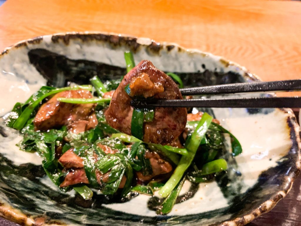 具材は希少な鶏の白レバーと厳選したニラのみ、味付けは継ぎ足しで熟成させた黒ニンニクと生姜の自家製タレ。フォアグラを彷彿とさせる濃厚なレバーのとろけるような柔らかさとシャキッとした青ニラの食感を、ぜひおためしください。